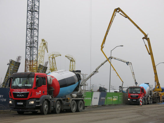 Później będzie można wypompować wodę z wykopu i dokładnie uszczelnić ściany. Równolegle wykonywane są słupy parteru. Rozpoczęto także deskowanie klatki schodowej.