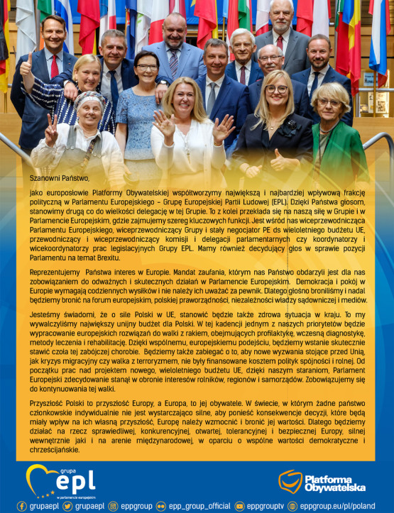Po pierwsze chciałbym raz jeszcze bardzo serdecznie podziękować wszystkim, którzy zagłosowali na mnie w wyborach do Parlamentu Europejskiego.