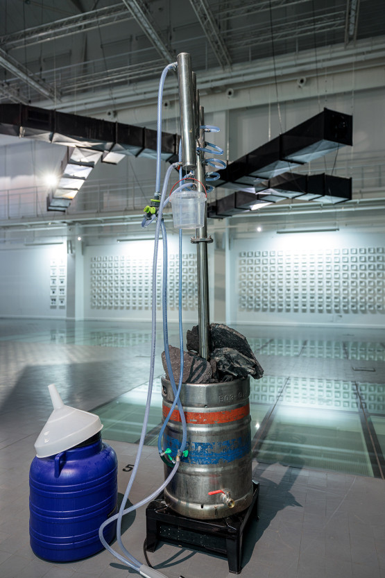 –To właściwie jedna wielka instalacja złożona z pięciu prac. Każda z jednej strony referuje do jakiegoś gatunku sztuki, np. "Muzeum Gatunków Wymarłych" do konwencji archiwum, "Sound system" z muzyką na wentylatory powietrza do prac audialnych w stylu Stockhauzena, a "Karburator" jest w pewnym stopniu pastiszem pełnych patosu dzieł nurtu art+science. Z drugiej strony odnosi się do przemian katastrofy klimatycznej, ale i odejścia od węgla i tego, co nazywamy dekarbonizacją – przybliża Stanisław Ruksza, kurator wystawy. Jak tłumaczy, cały projekt wyszedł od książki Karela Čapka „Fabryka Absolutu”, opowieści dystopijnej, w której wynalazcy udaje się stworzyć mechanizm pozwalający spalić materię w stopniu zupełnym. Przy okazji wytwarza się produkt uboczny – Absolut, który wiążę się z ideą Boga. – I jak to bywa, kiedy religia zaczyna mieszać w rzeczywistości, dochodzi do niemal całkowitego zniszczenia ludzkości. Przekładając to na czasy dzisiejsze, posłużyło to do opowieści o samozagładzie człowieka, którego na wystawie nie ma. Wszechobecny jest za to węgiel.