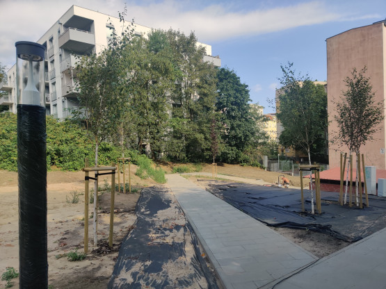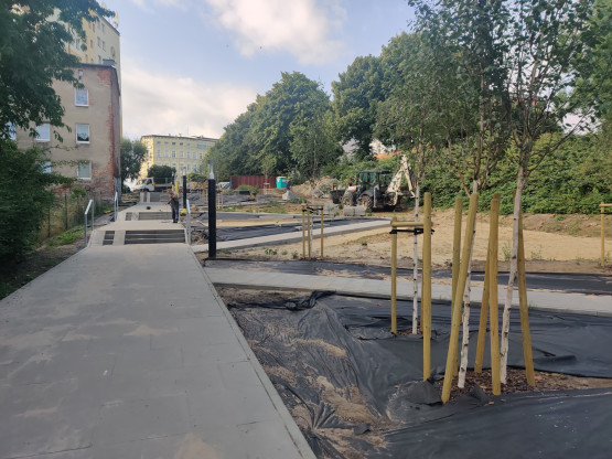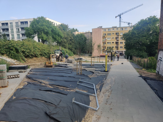 Trwa przebudowa terenu przy ulicy Dubois. Teren został uporządkowany, a wykonawcy czekają obecnie na dostawę elementów – zarówno małej architektury, jak i większych urządzeń.