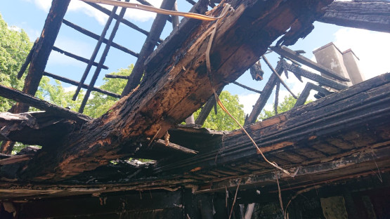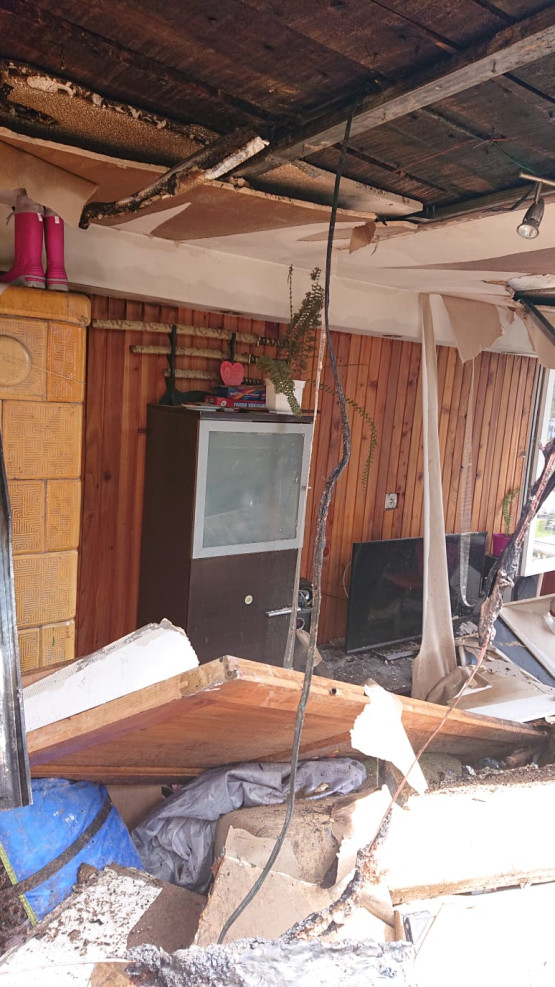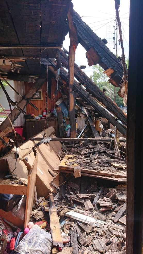 Część domu przy ulicy Białowieskiej 6 spłonęła doszczętnie. Trudno powiedzieć jak to możliwe, że ogień strawił dach i piętro, a w lepszym stanie pozostał parter. Nie jest wykluczone, że powodem pożaru było zwarcie instalacji elektrycznej. Rodzina Wolaków w kilka minut straciła dobytek życia, a to nie koniec problemów.