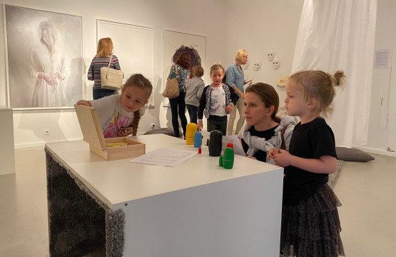 Zazwyczaj niezwykle barwne wnętrze galerii „Tworzę Się” (pl. Żołnierza Polskiego 2, wejście od ul. Tkackiej) tym razem przybrało formę „white cube” – na ścianach króluje neutralny kolor biały, a przy pomocy oszczędnych środków i minimalistycznej formy dzieci odkrywają sztukę współczesną.