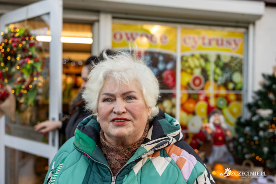 - Madzia ma tak piękne dekoracje, że aż chce się przychodzić. Ja już się śmieję, że zaraz jej choinkę jedną zabiorę, bo taka ładna - mówi mieszkanka osiedla, pani Maryla, która na zakupy przyszła z córką Ewą. - A możemy prosić o zdjęcie z panią Madzią? - śmieją się i pozują do wspólnej fotografii. - Drugiego takiego warzywniaka nie ma w całym mieście - dodaje jedna z kobiet. Kolejna klientka ogląda parę mikołajów: - Pan Mikołaj i pani Mikołajowa! Jutro przyjdę z wnusią, żeby zobaczyła - mówi.
