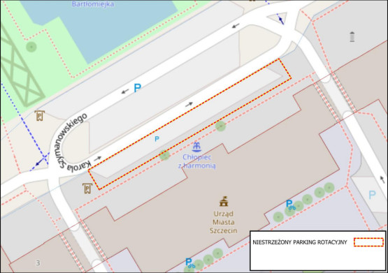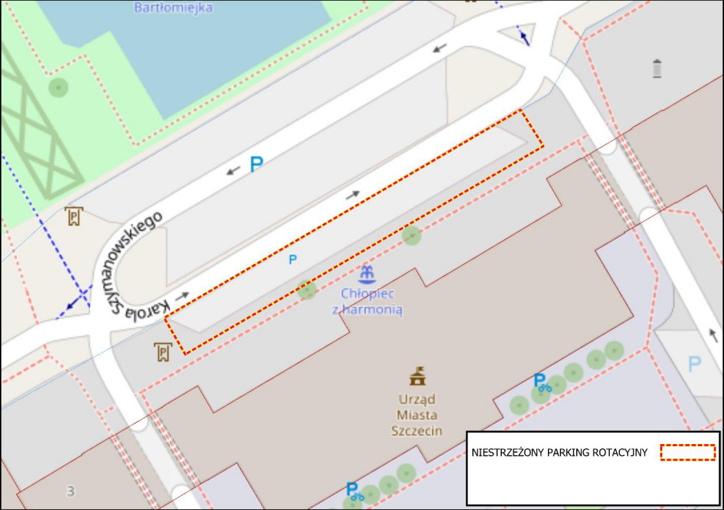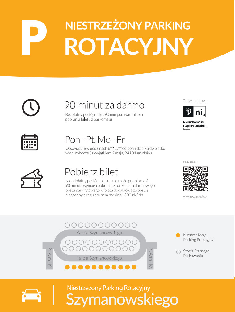 To pierwszy parking rotacyjny w Szczecinie. Wybrano taką formułę, gdyż z opisywanymi miejscami postojowymi przed gmachem magistratu od dawna był „problem”. Nie są w pasie drogi publicznej, więc nie można wprowadzić Strefy Płatnego Parkowania. Przez jakiś czas funkcjonował tam na innych zasadach Płatny Parking Niestrzeżony. Tyle tylko, że kierowcy zbyt często mylili PPN z sąsiednią SPP.