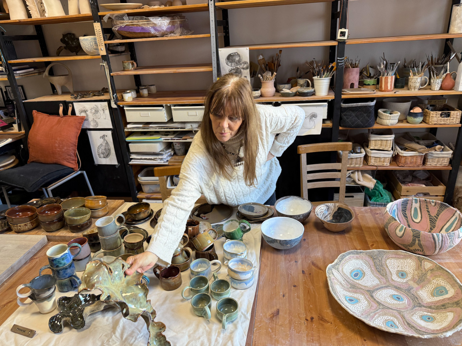 Dużo oryginalnych wyrobów można zobaczyć także u jej sąsiadki. W pracowni Vilkometria Anny Wilczyńskiej od progu wrażenie robi to, jak różne kształty i kolory może przybierać ceramika.