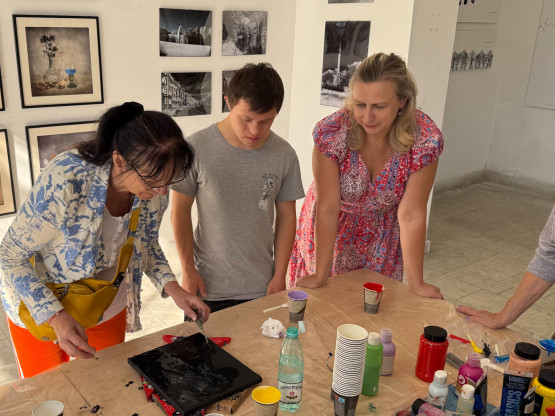 Na profilu wydarzenia są też terminy warsztatów. Odwiedzając pracownie można bowiem pod okiem specjalistów złapać za pędzel, dłuto albo „chlusnąć” farbą na płótno.