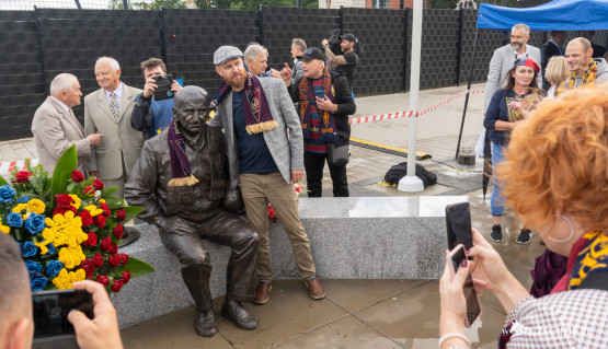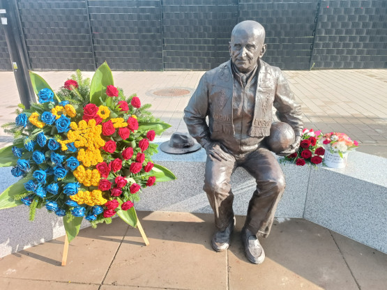 Monument stanął przed wejściem na stadion od ul. Twardowskiego. Przedstawia trenera siedzącego na trybunach z nieodłącznym kapeluszem, szalikiem Pogoni i piłką pod pachą. Każdy może się do niego przysiąść i zrobić wspólne zdjęcie.