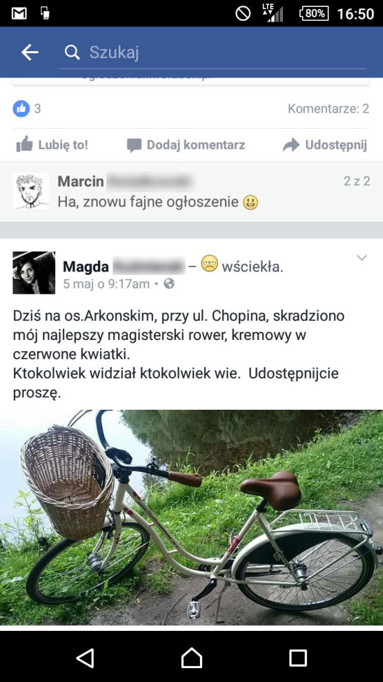 Jest to rozwiązanie, które prawdopodobnie nigdy nie wejdzie w życie, ale odzyskać rower można w podobny sposób jak pani Magda. Publikując jego zdjęcie i informację o kradzieży w mediach społecznościowych. Jak się okazuje, mogą sporo zdziałać.