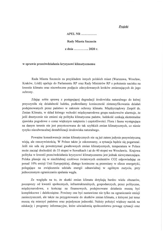 Przyjęcie apelu nie niesie za sobą żadnych skutków prawnych, jest tylko formą deklaracji poparcia przez Radę Miasta określonych działań. Mimo to, podczas wtorkowej sesji dyskusja na temat apelu klimatycznego była gorąca, dokładnie odzwierciedlająca podział polityczny w Szczecinie i w całym kraju.