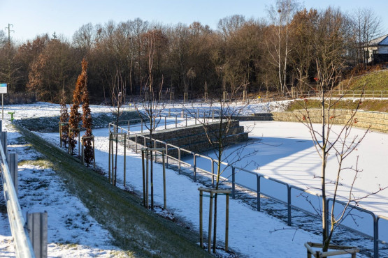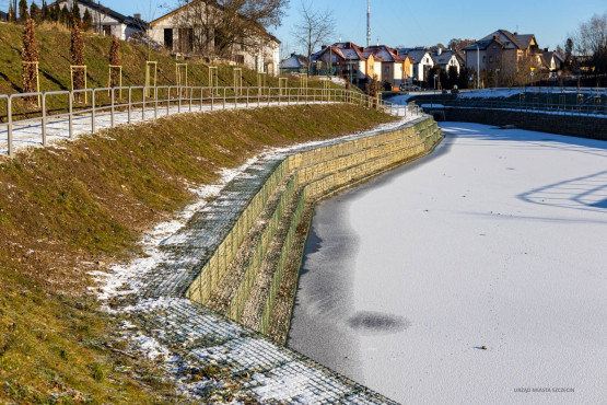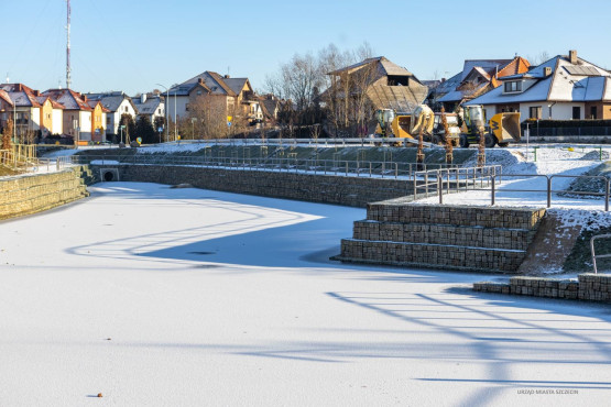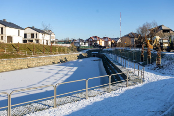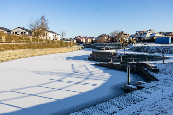 – Skarpy zostały wykonane z bentomaty oraz koszy gabionowych wypełnionych kostką, która pochodzi z rozbiórek szczecińskich ulic. Sam zbiornik posiada odpływ sterowany z regulatorem przepływu oraz zastawkę naścienną kanałową dla awaryjnego przepuszczania wód powodziowych – dodaje Piotr Zieliński.