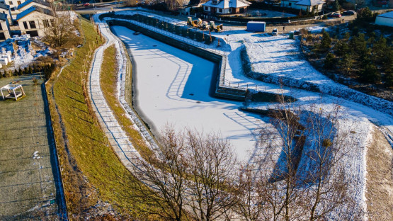 Powierzchnia zbiornika retencyjnego wynosi 0,4 hektara, głębokość – 2,9 metrów, a objętość – 5500 metrów sześciennych.