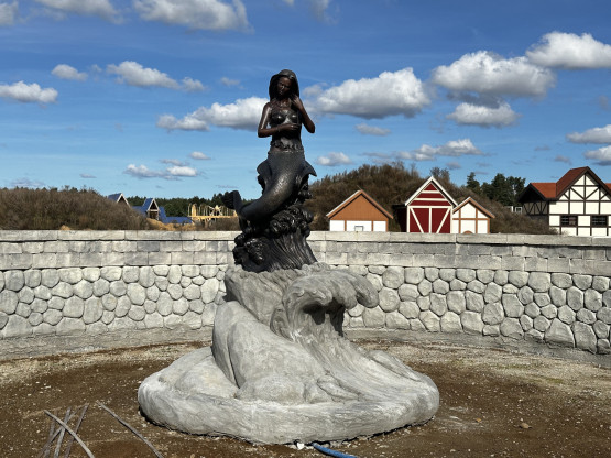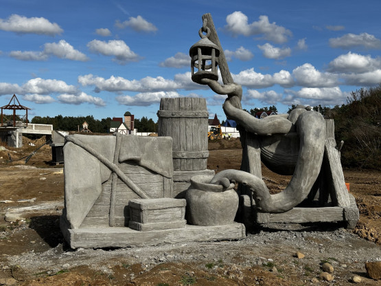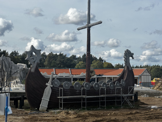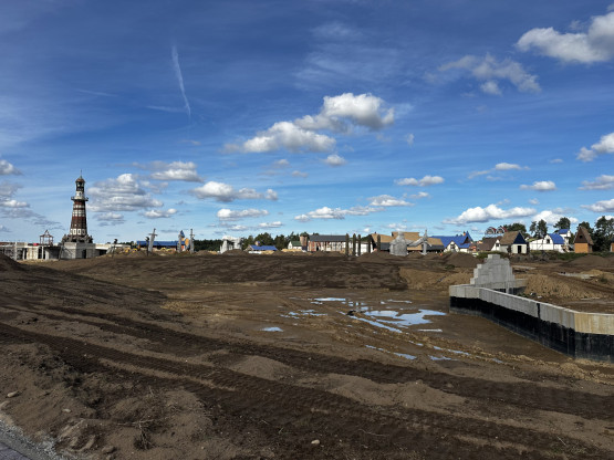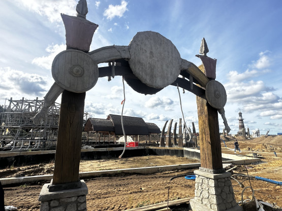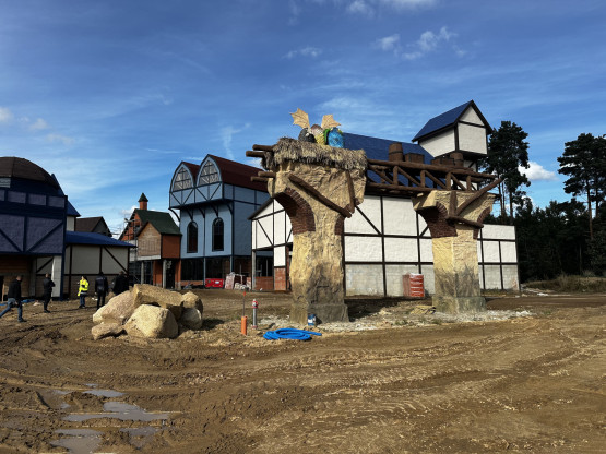 Budowa parku ruszyła dwa lata temu. Początkowo zapowiadano nawet, że będzie gotowy już wiosną 2024 roku, jednak ten termin okazał się nierealny. Teraz plac budowy wciąż skąpany jest w błocie, ale w stanie surowym gotowe są już wszystkie budynki (ponad 40), w których znajdą się sklepiki, restauracje, kawiarnie i punkty usługowe.
