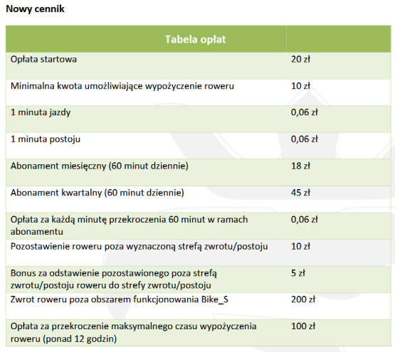 Wcześniej 20-minutowa przejażdżka szczecińskim rowerem miejskim była bezpłatna. Teraz zrezygnowano z tego rozwiązania. Minuta jazdy kosztować będzie 6 groszy. Osoby często korzystające z miejskich jednośladów będą mogły wykupić abonament: miesięczny (18 zł) lub kwartalny (45 zł). Każdego dnia przysługiwać im będzie w jego ramach godzina jazdy. Jeśli przekroczą ten czas, też zapłacą 6 groszy za każdą kolejną minutę.