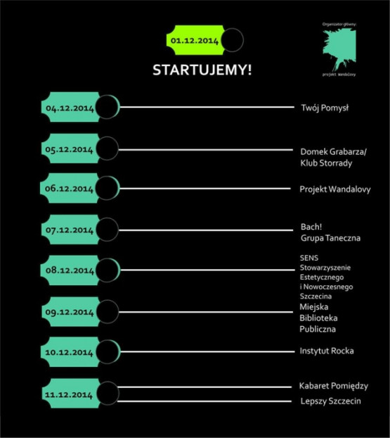 Zaplanowano m.in. pokaz rysunków satyrycznych, prezentację „Co to są Przydasie i dlaczego ich nie lubimy?”, kabaret, występ taneczny, Bombing Monitorowy we wszystkich filiach Miejskiej Biblioteki Publicznej, happening na temat alternatywnych form komunikacji wizualnych, teledysk prosto z zasolonego Cmentarza. Jak zaznacza koordynatorka, mnogość tych pomysłów jest odpowiedzią na „miękki” wandalizm, panoszący się na szczecińskiej nekropolii, na co dzień niezauważany, choć jego skala jest ogromna.