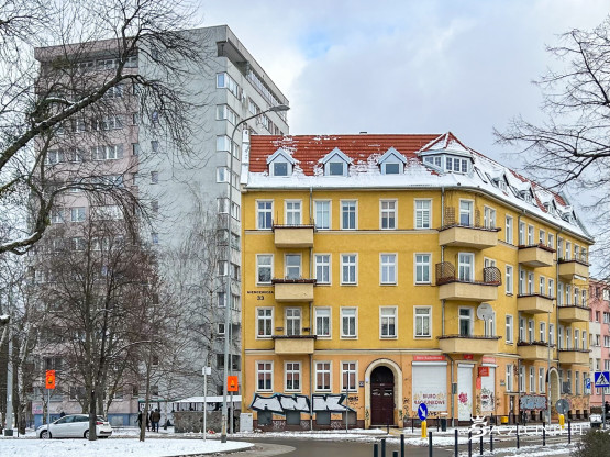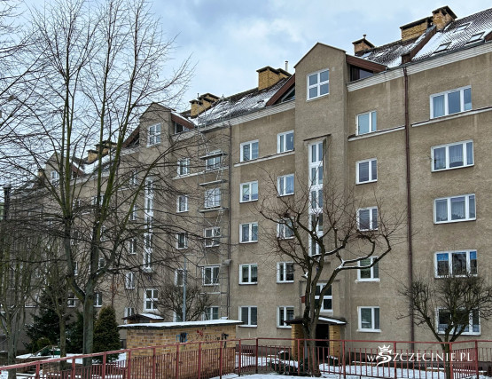 – Prawdopodobnie były to początki większego założenia, którym było modernistyczne osiedle Szczecińskiego Przedsiębiorstwa Budownictwa Społecznego – podejrzewa Gryfny Szczecin. – Co ciekawe, kiedyś był to jeden budynek. Zniszczenia wojenne sprawiły jednak, że mamy obecnie dwie części całego kompleksu.