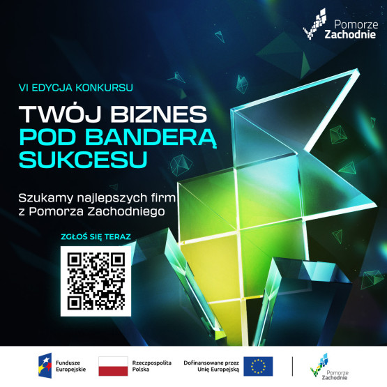 VI edycja konkursu „Twój biznes pod banderą sukcesu” jest realizowana w ramach projektu pn. „Pomorze Zachodnie - Innowacyjne, Kreatywne, Nowoczesne” finansowanego z Programu Fundusze Europejskie dla Pomorza Zachodniego 2021-2027, Priorytet 1 Fundusze Europejskie na rzecz przedsiębiorczego Pomorza Zachodniego, Działanie 1.8 Promocja innowacji i przedsiębiorczości oraz profesjonalizacja obsługi inwestorów