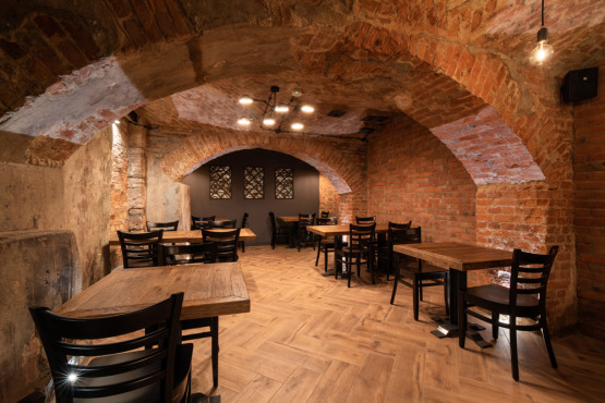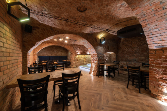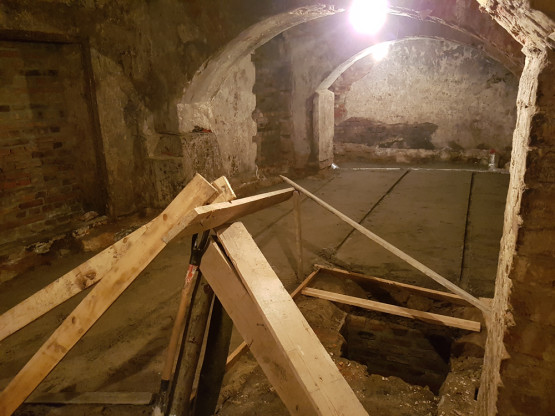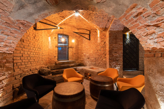W ceglanej piwnicy czuć powiew historii. Do jej renowacji wykorzystano wszystkie możliwe historyczne materiały budowlane odsłonięte podczas prac odkrywkowo - restauracyjnych na tym terenie. To nie tylko oryginalne cegły, ale również jeszcze starsze od nich głazy. Zobaczyć można też ceramikę, fragmenty metalowych okuć, ozdoby czy też przedmioty codziennego użytku. Wszystko zostało znalezione tutaj podczas prac ziemnych i obecnie na miejscu wyeksponowane.