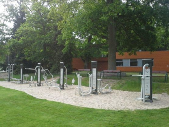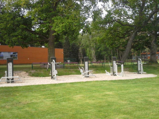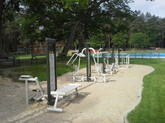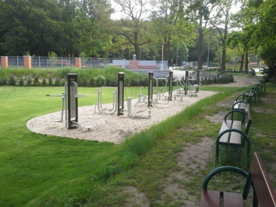 Oprócz tego, dla najmłodszych przygotowano ogromną piaskownicę. Znajduje się ona tuż przy placu zabaw. Z kolei po drugiej stronie obiektu, przy budynku ochrony, została ustawiona siłownia pod chmurką z sześcioma urządzeniami.