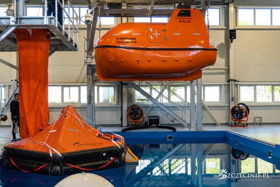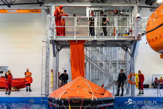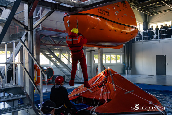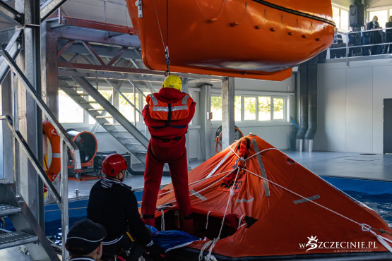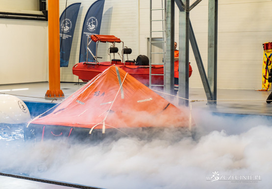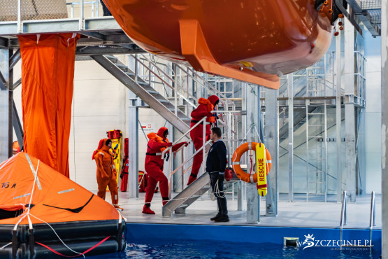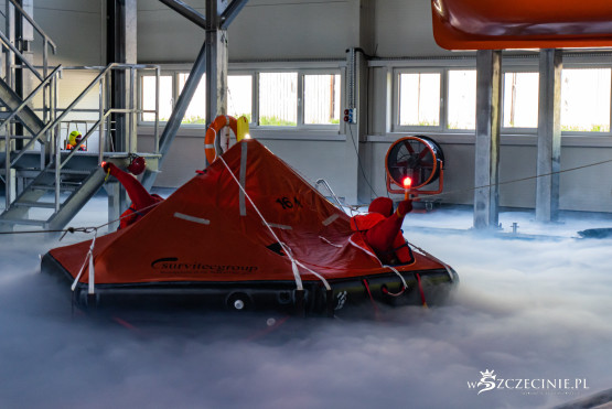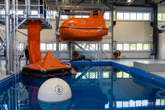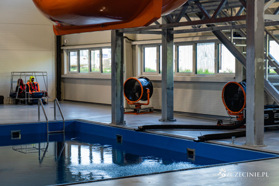 W dawnej hali sportowej (od strony ul. Rugiańskiej) wybudowano basen wyposażony m.in. w symulator sztormu. Są tam kulę do wytwarzania fal, dmuchawy ze spryskiwaczami do kreowania wiatru, stroboskopy imitujące błyskawice, a nawet generator ciężkiej mgły. W środę zaprezentowano jak wyglądają szkolenia z podejmowania rozbitków z tratwy na wzburzonym morzu.