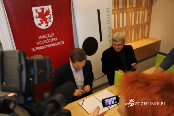 Podczas dzisiejszej konferencji Marszałek Województwa Zachodniopomorskiego Olgierd Geblewicz i Rektor Akademii Sztuki w Szczecinie prof. Ryszarda Handke podpisali umowę o dofinansowanie projektu AkademiaZMIENIASzczecin: Modernizacja Pałacu pod Globusem. Na renowację pałacu ze środków unijnych zostanie przekazane niemal 11 mln zł.