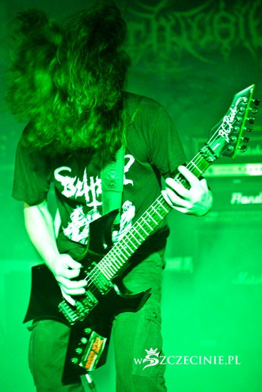 Pandemonium ma status legendy na polskiej scenie metalowej, do czego przyczyniła się nie tylko wartośc dokonań tego zespołu, ale talże perturbacje dotyczące nazwy (przez pewien czas musieli występować pod szyldem Domain). Przez dwadzieścia lat działalności stworzyli. takie płyty jak „The Ancient Catatonia”, „The Zonei” oraz ostatnia - „Hellspawn”(wydana w 2007 roku). Łodzianie jeszcze nie ukończyli jeszcze prac nad nowym, bardzo oczekiwanym przez fanów albumem, ale już od wielu miesięcy grają na koncertach utwory zapowiadające ten materiał (który ma nosić tytuł „Misantrophy”). Tak było także wczoraj, kiedy zabrzmiał „Black Forest” i „God Delusion”. Paul, Simon, Mark i Michael wybierali też utwory, na które widzowie oczekiwali. Nie mógł zostać pominięty taki klasyk jak „Unholy Existence” czy „Hellspawn”. Paul próbował komentować poszczególne utwory, ale najwyraźniej tego wieczoru nie miał weny. Lepiej mu szło granie na gitarze. W sumie Pandemonium zagrało około 45 minutowy program. Moim zdaniem zabrakło jakiegoś dobrego zwieńczenia całości. Mimo skandowania nazwy grupy przez widzów, muzycy nie zdecydowali się na to by jeszcze dorzucić jakiś bonus. Mam nadzieję, że że wrócą do Szczecina w lepszej formie już po wydaniu płyty.