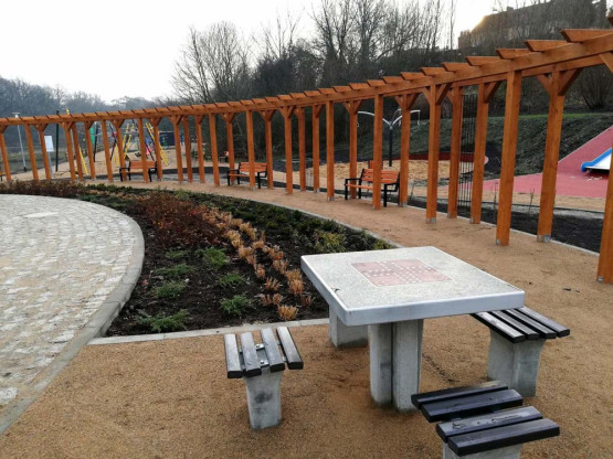 Powstał też ogród sensoryczny, którego najważniejszym elementem jest ścieżka sensoryczna. To ścieżka o zróżnicowanej nawierzchni stymulująca rozwój młodszych dzieci. Jej uzupełnienie stanowi kompozycja roślin o różnorodnej fakturze, barwie i zapachu. Dla miłośników aktywnego wypoczynku, oprócz typowych urządzeń do ćwiczeń, ustawiono również stoły do gry w szachy i chińczyka, piłkarzyki oraz tenisa stołowego.