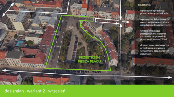 Jeszcze dalej idzie wariant drugi, który będzie testowany we wrześniu. Wtedy wyłączone zostaną dodatkowo miejsca parkingowe przed Akademią Sztuki.