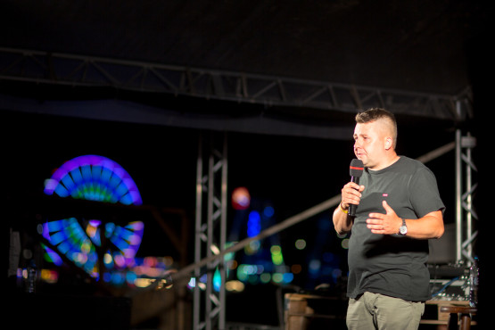 – To pierwszy festiwal w 14-letniej historii, podczas którego spotykamy się latem – mówił prowadzący inauguracyjny wieczór, Damian Viking Usewicz. – Nowością jest też plener, ale jak było widać dzisiaj, to raczej dobry pomysł. Tym bardziej, że spotkaliśmy się na Wyspie Grodzkiej, a to chyba miejsce stworzone do takich rzeczy.Stand-up na start: OPEN MIC oraz występ Adama Gajdy