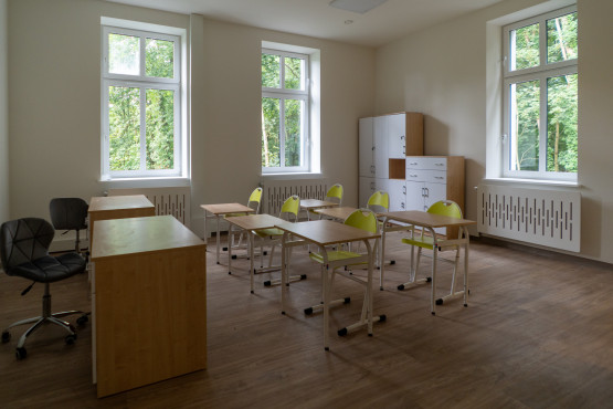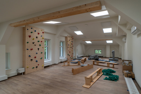 Komfort nauki i poczucie bezpieczeństwa mają zapewnić najmłodszym małe sale nauki (maksymalnie 6-osobowe). Jest też m.in. sala do integracji sensorycznej, sala gimnastyczna i sala audiowizualna. Oczkiem w głowie wykonawcy była piwnica, w której udało się zachować historyczne ceglane łuki i stworzyć tam funkcjonalne szatnie.