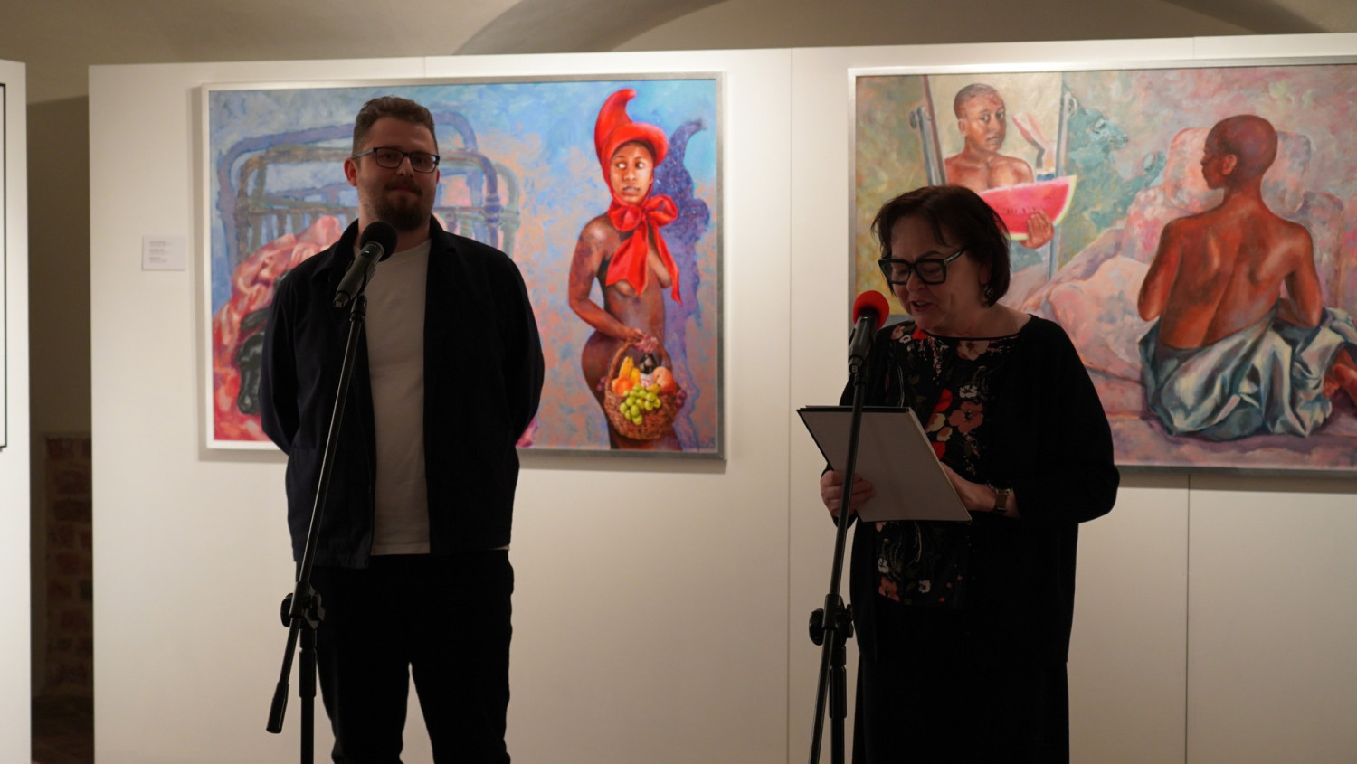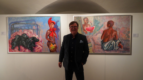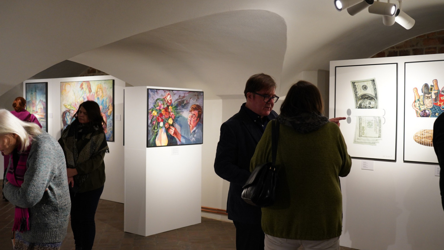 – Starałem się wraz z kuratorem tej ekspozycji, Michałem Tarnowskim, wybrać takie prace, które najwięcej mówią o jakimś okresie mojej twórczości. Część z nich to początek cyklu, który będzie się rozrastał, jest tu np. pastisz twórczości dla dzieci, czyli ujęcie tego tematu w żartobliwy sposób. To ilustracje do książki. Interesuje mnie także komentowanie rzeczywistości, czego dowodem są kolaże tu pokazane. Na jednym z nich widzimy banany, które nawiązują do unijnych wymogów, które pozwalają na sprzedaż tylko tych owoców, które mają dopuszczalne zakrzywienie 18 stopni – mówił artysta podczas wernisażu.