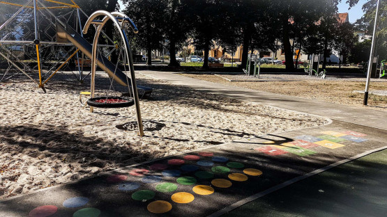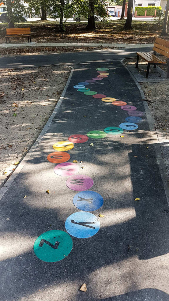 Na skwerze pojawiła się również pierwsza w Szczecinie strefa gier asfaltowych, na której znalazły się „boiska” do gry w klasy oraz twistera. Odpocząć można także na hamaku.