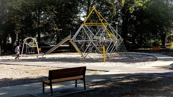 Właśnie zakończyła się przebudowa tego miejsca. Na zaniedbanym dotąd skwerze pojawiło się mnóstwo nowych atrakcji. Dzieci mogą korzystać z gigantycznej zabawki linowej. Tuż obok znajdują się place zabaw: jeden z zabawkami dla dzieci starszych, drugi z zabawkami mniejszych gabarytów, przeznaczonymi dla młodszych użytkowników. Jest ustawiona siłownia pod chmurką, są także urządzenia do ćwiczeń dla osób niepełnosprawnych.