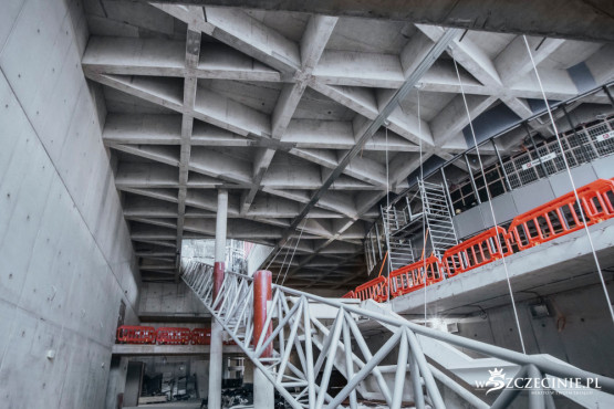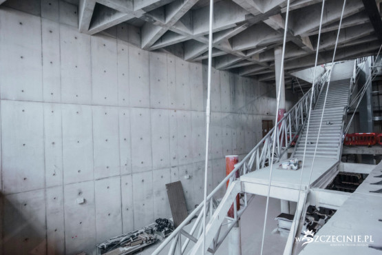 W każdym miejscu inwestycji widać grupy pracowników, którzy uwijają się z kolejnymi etapami rozbudowy. Ku końcowi zbliżają się już prace w scenie szekspirowskiej – tak bardzo wyczekiwanej przez szczecińskich artystów, jak i entuzjastów Melpomeny.