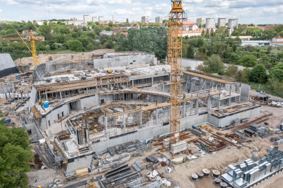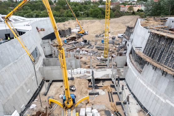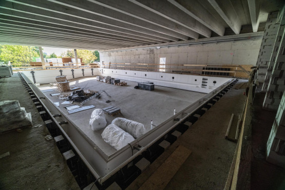 – O tempie i intensywności prac niech świadczą liczby – ponad 200 osób (pracowników nadzoru, robót technicznych, budowlanych) jest aktualnie zaangażowanych w budowę całego kompleksu. Zmiany najbardziej są widoczne na budynku basenowym. To tutaj wciąż realizowane są prace żelbetowe. Istotnym etapem robót jest montaż niecek basenowych – pierwsza zainstalowana została niecka basenu sportowego. Prowadzone są teraz prace przy wykonywaniu obudowy basenu rekreacyjnego znajdującego w pomieszczeniu VIP – informuje Piotr Zieliński, rzecznik prasowy miejskiej spółki Fabryka Wody.