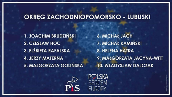 Radna wystartuje z miejsca dziewiątego. Inni kandydaci PiS to między innymi eurodeputowany Czesław Hoc, wiceminister gospodarki morskiej i żeglugi śródlądowej Jerzy Materna czy poseł ze Stargardu Michał Jach. Wybory odbędą się 26 maja.