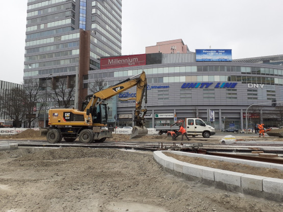 – Na ulicy Piłsudskiego łączone było nowe torowisko z istniejącym, prowadzone były prace asfaltowe w torowisku, trwała rozbiórka starego i budowa nowego chodnika, do tego frezowanie istniejącej jezdni. Nie mniejsze zmiany na Wyzwolenia – w zależności od odcinka trwa tam wykonanie podbudowy torowej i ustawianie torowiska. Na samym placu Rodła betonowanie dolnej warstwy podbudowy oraz ustawianie krawężnika drogowego – informuje Hanna Pieczyńska, rzecznik prasowy miejskiej spółki Tramwaje Szczecińskie.