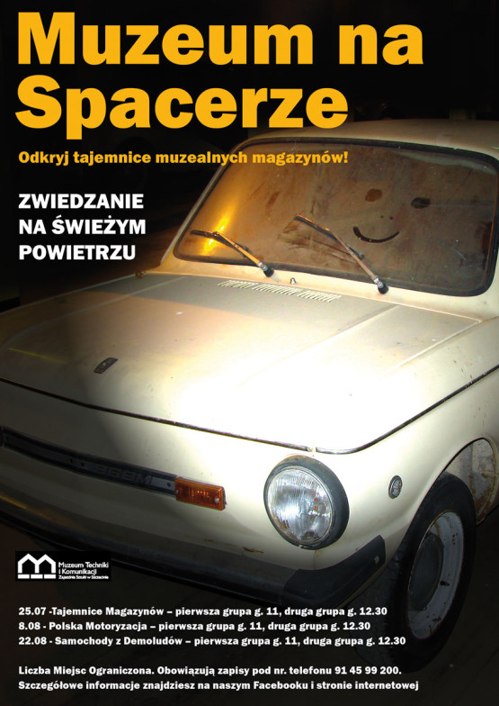 Magazyny Muzeum Techniki i Komunikacji w Szczecinie będzie można zwiedzić w ramach akcji „Muzeum na spacerze”, która obejmie trzy wakacyjne soboty: 25 lipca, 8 i 22 sierpnia. Wycieczki w tych dniach odbędą się w dwóch turach o godz. 11:00 i 12:30. W każdą sobotę będzie inny temat przewodni spacerów.