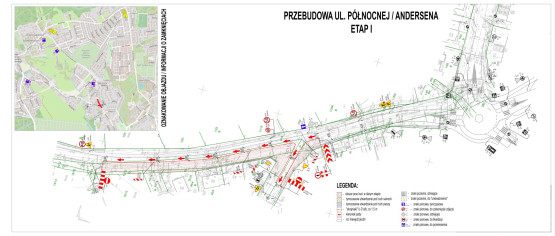 - zamknięcie i wygrodzenie terenu zachodniej części ul. Północnej i Andersena z zachowaniem ruchu jednokierunkowego (przejazd możliwy od ronda, ulicą Północną w kierunku ulicy Andersena oraz ulicy Chłodnej), niemożliwy będzie wyjazd w ulicę Andersena na skrzyżowaniu z ulicą Chłodną;