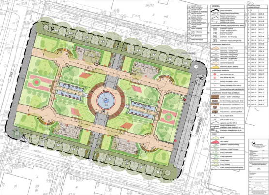 Fontanna nocą będzie podświetlana. Wokół niej zaplanowano trzy rzędy siedzisk w układzie amfiteatralnym, na planie koła. Projekt zakłada również wykonanie czterech niecek z wodotryskami, które powstaną wzdłuż osi placu.