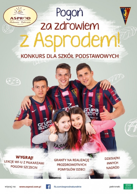 – Nasza inicjatywa dedykowana jest dzieciom, ale mamy nadzieję, że nie przejdzie ona bez echa także wśród dorosłych. To informacje przekazywane głosem najmłodszych członków rodziny często najskuteczniej do nas docierają. Dlatego też przez szerzenie wiedzy o zdrowym żywieniu i aktywności fizycznej Asprod chce zachęcić uczniów również do tego, aby zwracali uwagę swoich bliskich na to, co kładą na talerzu i jak dbają o kondycję – mówi Dariusz Bielecki z piekarni Asprod. – Cieszy nas też ogromnie, że naszą inicjatywę zdecydowała się aktywnie wesprzeć Pogoń Szczecin, której zawodnicy w ramach akcji będą uczestniczyć w specjalnych lekcjach w wybranych szkołach. To dodatkowa gratka i zachętą dla dzieciaków i ich opiekunów, aby przystąpić do naszego konkursu – dodaje.