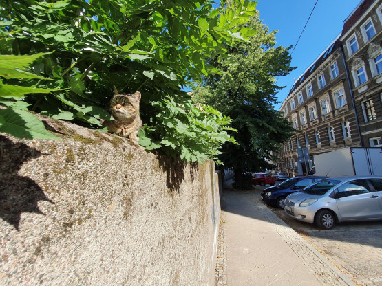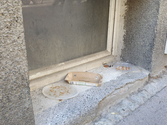 W relacji Pani Anny, nowa sąsiadka była bardzo arogancka i agresywna. Karmicielka pokazuje nam murek, który miał być polewany chemicznym środkiem czyszczącym. Widać na nim i na chodniku zacieki.