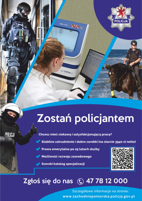 „Zawód policjanta to wyzwanie, a jednocześnie marzenie wielu młodych ludzi. Z pewnością jest to ciekawa praca, w której możesz znaleźć miejsce dla siebie, a Twoje umiejętności i zdobyta wiedza pomogą podnieść poziom bezpieczeństwa obywateli. Bycie policjantem to przede wszystkim codzienna satysfakcja z pełnionej służby. Dołącz do drużyny profesjonalistów i zostań jednym z nas!” – czytamy w ogłoszeniu.