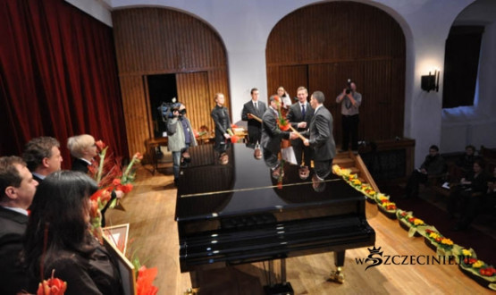 Podczas spotkania z dziennikarzami w Urzędzie Marszałkowskim, rektor Akademii Sztuki w Szczecinie – prof. Ryszard Handke, powiedział, że miał osobiście możliwość zobaczyć produkcję tego typu fortepianu (którego każdy element jest wykonywany ręcznie) i tym bardziej jest szczęśliwy z faktu, że będzie on w wyposażeniu Akademii. Gośćmi konferencji byli: przedstawiciel firmy Bösendorfer Peter von Seheer Thoss oraz rosyjska pianistka Valentina Igoszyna. Artystka pogratulowała wyboru tego właśnie instrumentu, który nie często można spotkać w salach koncertowych, a jest wręcz unikatowy gdyż posiada szczególny ton oraz dodatkową oktawę w dolnym rejestrze dźwięków.