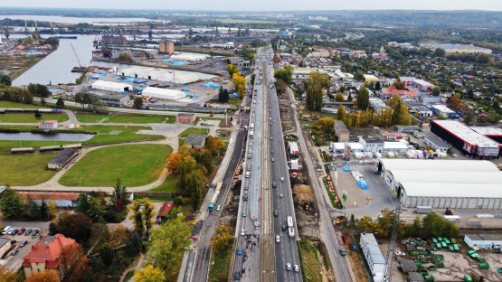 Estakada Pomorska to fragment ul. Gdańskiej na wysokości elektrociepłowni. Zbudowano ją w 1972 r., puszczając główny ruch górą, nad portowymi bocznicami kolejowymi. Wiadukt tramwajowo-drogowy jest dziś w złym stanie technicznym i wymagał kompleksowego remontu. Inwestycja obejmuje też przebudowę wiaduktu nad bocznicą kolejową i modernizację układu jezdni pomocniczych.