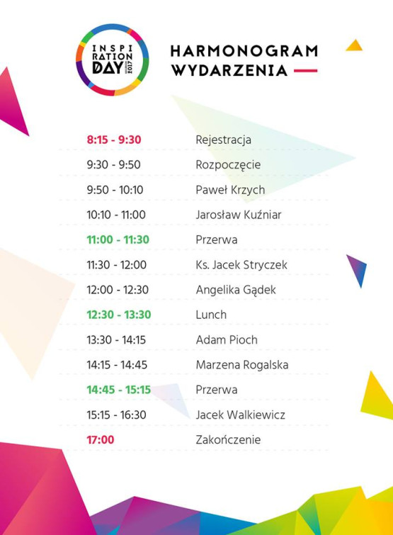 Tegoroczna, trzecia już edycja Inspiration Day Show, odbędzie się w sobotę, 16 września w Operze na Zamku. Weźmie w niej udział siedem niezwykłych osobowości. Wśród nich znaleźli się: pomysłodawca „Szlachetnej Paczki” i prezes Stowarzyszenia Wiosna, jednej z największych organizacji pozarządowych w Polsce ks. Jacek Stryczek; psycholog, mówca i autor książek „Pełna MOC życia” i „Pełna MOC możliwości” Jacek Walkiewicz; znani dziennikarze – Marzena Rogalska i Jarosław Kuźniar oraz założyciel klubów Toastmasters Adam Pioch, który przemawianiem zainspirował dziesiątki ludzi. Ze szczecinianami spotka się także podróżniczka i mówczyni Angelika Chrapkiewicz-Gądek, która mimo że choruje na rdzeniowy zanik mięśni i porusza się na wózku, ma w sobie nieprawdopodobną radość życia. Pokonała wiele ograniczeń wynikających z jej niepełnosprawności, a od kilku lat sukcesywnie realizuje swoje plany związane z górami. Jako pierwsza osoba na świecie z taką niepełnosprawnością w 2008 r. w wyprawie na najwyższe wzniesienie Afryki, Kilimandżaro, dotarła do wysokości 5200 m n.p.m., w 2016 r. zdobyła najwyższy szczyt Polski - Rysy (2499 m n.p.m.), a w 2017 r. Mnicha (2068 m n.p.m.). Wśród prelegentów jest też znany większości szczecinian Paweł Krzych, autor szczecinblog.pl oraz Uśmiechnij się – jesteś w Szczecinie.
