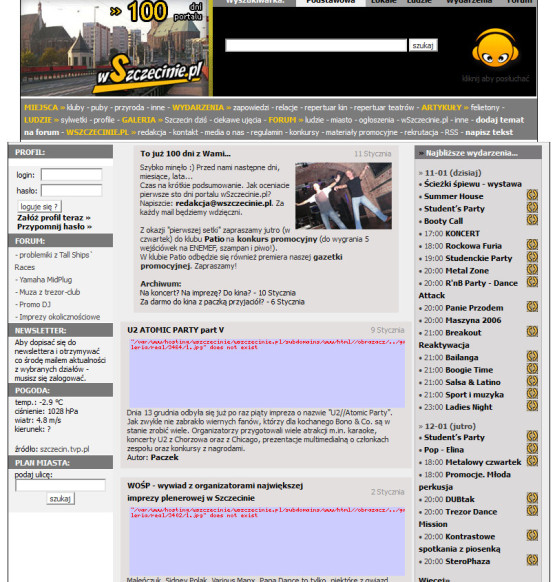 Tak zaczęła się historia wSzczecinie.pl. Portal na początku opierał się przede wszystkim na zapowiedziach i relacjach z wydarzeń. Na stronie można było znaleźć ciekawe miejsca do odwiedzenia albo sprawdzić w autorskiej wyszukiwarce, czy restauracja oferująca konkretne jedzenie (np. chińszczyznę) jest teraz czynna. Dziś takie narzędzia są ogólnodostępne, wtedy jednak nie były oczywistością.
