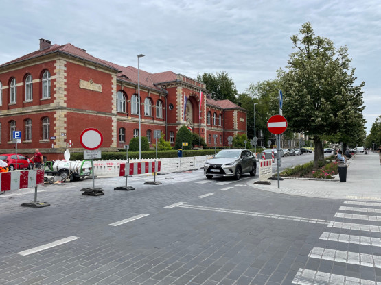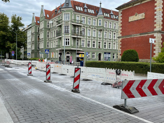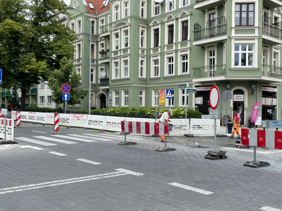 Teraz hiszpańska spółka przystąpiła do prac naprawczych na nitce wschodniej, czyli tej, która prowadzi do Urzędu Miasta. Roboty polegają na naprawie fragmentów jezdni z kostki kamiennej, w szczególności chodzi o wykruszenia spoin.