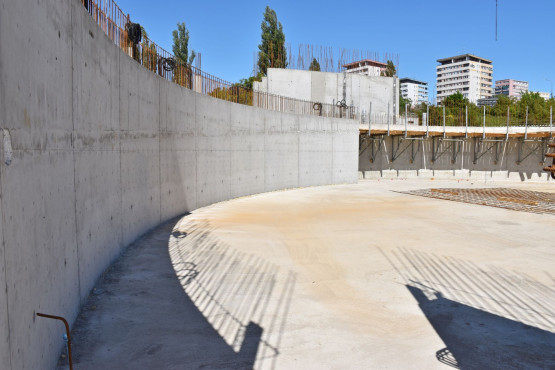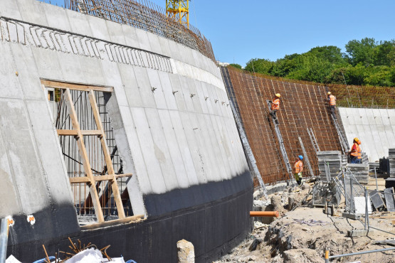 – Prowadzone są prace przy montażu zbrojenia na zewnętrznych ścianach budynku, jak również roboty żelbetowe przy budowie ścian, słupów a także stropu nad parterem budynku. W ostatnich dniach wykonywana była instalacja kanalizacji podposadzkowej, prowadzono także roboty związane z wykonaniem izolacji przeciwwodnej i termicznej ścian fundamentowych – informuje Piotr Zieliński, rzecznik prasowy Fabryki Wody.