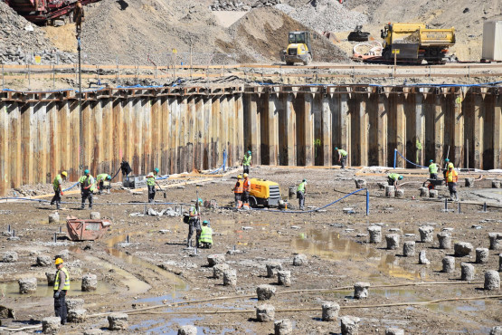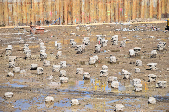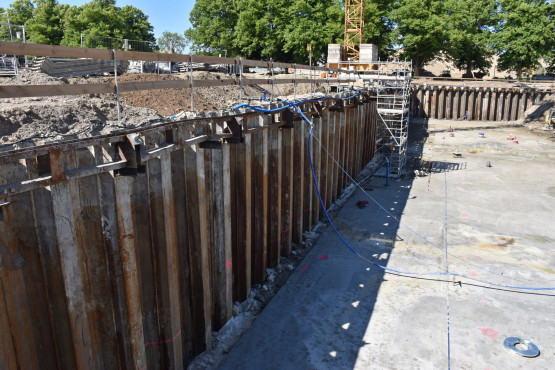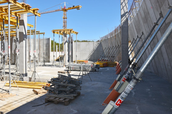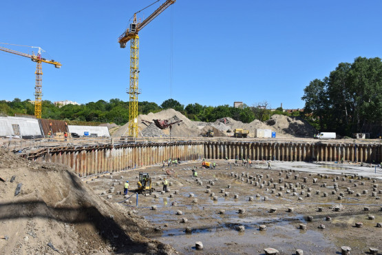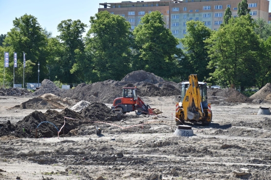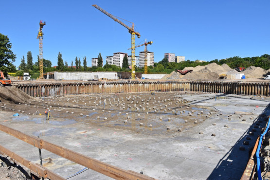 W wykopie pod budynek basenu zostało zakończone palowanie. W najbliższym czasie rozpocznie się wylewanie betonowej płyty fundamentowej. Bardziej zaawansowane są prace przy budynku Edukatorium, który już nieco „wyrósł” z ziemi.