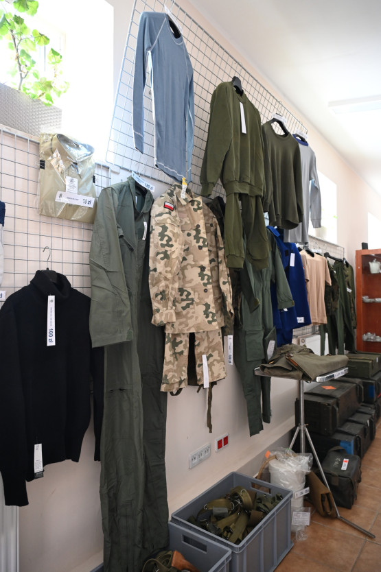 Obecnie mamy w ofercie pond 240 pozycji. Na pewno warto odwiedzić nas sklep, bo jest w czym wybierać. Asortyment w punkcie stacjonarnym cały czas się zmienia, część rzeczy zostaje sprzedana, ale dochodzą nowe pozycje, które w ciągu roku na bieżąco są przejmowane z jednostek wojskowych mówi kierownik Działu ds. Gospodarki Mieniem Ruchomym – Tomasz Żytniak.